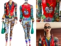 Der untere Teil besteht aus Beinen einer Schaufensterpuppe, welcher natürlich gestaltet wurde  in Acrylkollage. Die Tischplatte besteht aus schwarzem Glas.